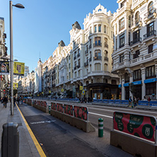 MADRID, SPAIN - JANUARY 21, 2018: Building at Gran Vía street in City of Madrid, Spain